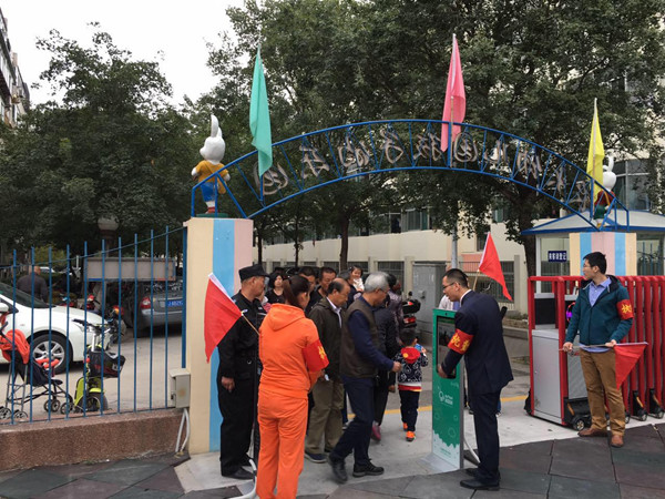 为了加强幼儿接送时间幼儿园大门口的安全管理,我们倡导家长积极报名争当执勤护学志愿者。因为有了家长的认真协助,下午接孩子时幼儿园门口是有序的队伍和家长整齐停放的车辆,长期良好的家园合作关系因为家长的积极配合,使得幼儿园门口又多了一层安全屏障。