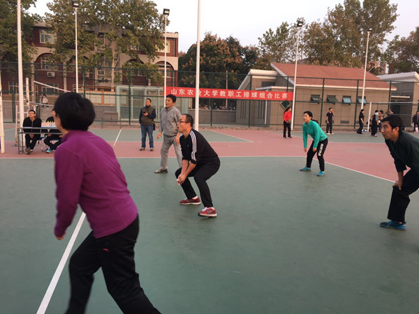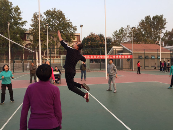 2016年山东农业大学教职工排球组合比赛在北校区体育场圆满结束,后勤处职工排球队最终获得第三名的好成绩。
