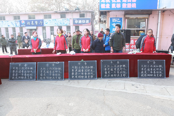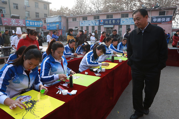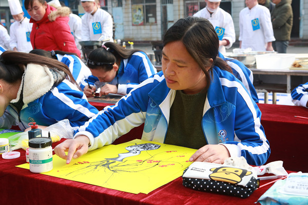 校工会主席盖会全同志讲话,车先礼同志宣布技能比赛开始。附校11名教师展示粉笔字书写、多学科板书设计技能,幼儿园13名教师展示吹画、刮蜡画技能;饮食服务中心18名选手参加了包水饺比赛和烹饪比赛。附校教师工整有力的粉笔字和精彩的数学、英语、美术、音乐学科板书,让现场观众感受到老师们扎实的基本功和对教学的刻苦钻研的敬业精神。幼儿园13位教师现场作画,分别设计出了以“流动的旋律”为主题的吹墨画和以“城市夜景”为主题的刮蜡画。作品造型美观,色彩鲜艳,引来现场观众热烈的掌声。饮食中心6名厨师要求在10分钟内完成60个共重一千克的水饺的制作。12名厨师在必选菜环节烹饪了色香味美的家常菜土豆丝,自选菜则做出了造型优美独特,寓意深厚的“中国梦”、“不忘初心”等菜品。3名专业厨师和2名伙管会学生代表作为评委,现场评选出3个一等奖,6个二等奖和5个三等奖。