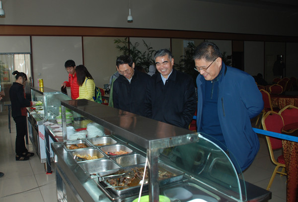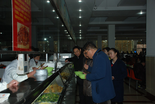 12月12日中午,学校党委常委、副校长吴衍涛来到大学食府检查饮食工作,后勤管理处处长亓乐秋,后勤党委书记兼饮食服务中心主任井明伦陪同检查。