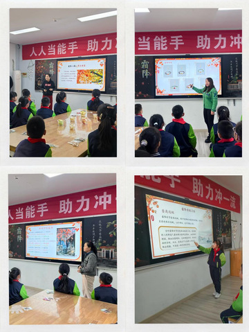 本次大赛的优质课展示围绕“二十四节气”中的霜降主题展开。教师通过讲解“霜降三候”—“豺乃祭兽”“草木黄落”“蛰虫咸俯”,引导学生感知自然物候的变化;结合南北地域差异,介绍了霜降时节农事与物产的特点。课堂中还融入了诵经典、品民俗环节,师生共同诵读霜降诗词,了解吃柿子、登高等传统习俗,在文化浸润中感受节气魅力。
