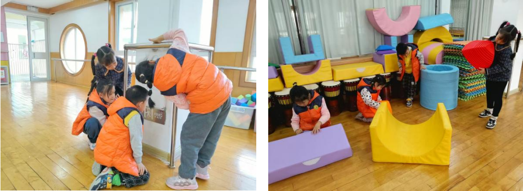 每半月,班级教师与幼儿一起进行活动室、寝室、走廊、功能室等处的安全隐患排查。